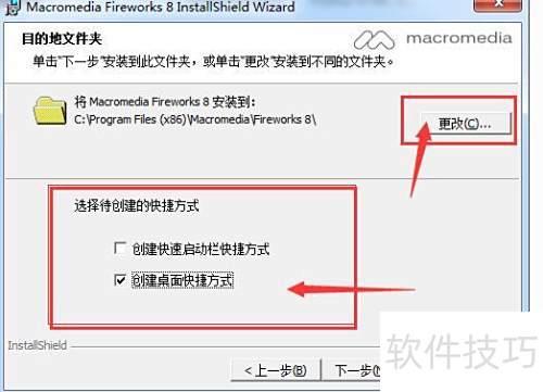 9、 按个人习惯调整安装路径,可保持默认;选择快捷方式后点击下一步继续。