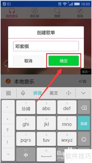 3、 输入你想命名的歌单名称,例如:邓紫棋,然后点击确定即可完成。