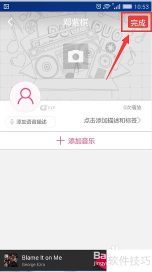 4、 进入歌单后,点击中间的相机图标可设置歌单头像。下方有和选项,可用于补充歌单信息。完成编辑后,点击即可保存。若无需修改,也可直接点击退出编辑界面。
