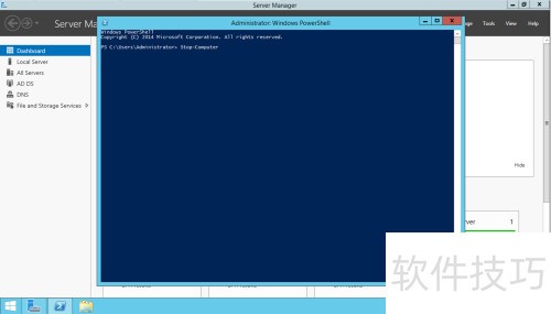 4、 在PowerShell中执行关机命令,输入Stop-Computer即可。