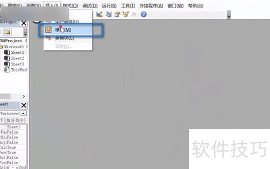 选中后按Alt+F11打开代码窗口,点击插入菜单中的模块选项。
