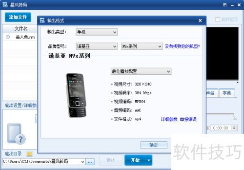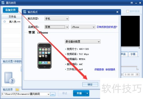 4、 选定手机后,需再次检查其输出视频的画质参数,确认无误后再进行后续操作。