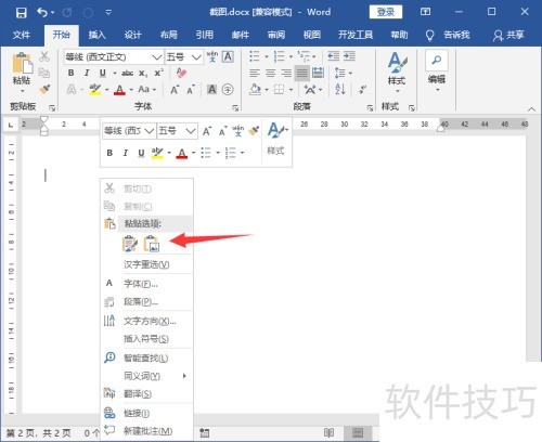 3、 新建Word文档,右键选择粘贴为图片即可完成操作。