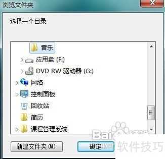 4、 添加歌曲目录时,点击选择后会弹出浏览窗口,找到音乐文件所在的文件夹并选中,然后点击底部确认按钮,即可将该目录添加至播放队列中。