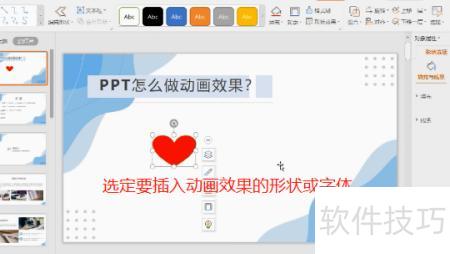 单击动画后,会显示多种效果选项,如出现等动画形式。