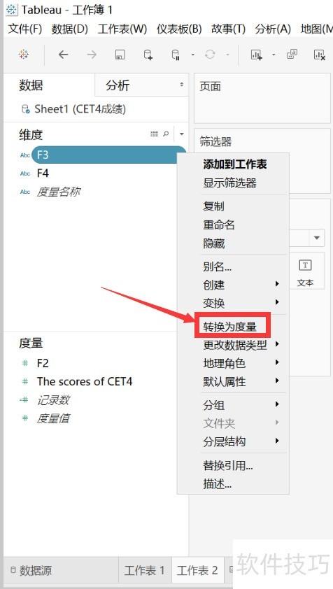 5、 在弹出的对话框中选择转换为度量,即可完成维度与度量之间的相互转换,操作方法相同。