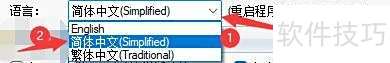 5、 在弹出的窗口中,点击语言选项,从列表中选择所需的语言,例如简体中文。
