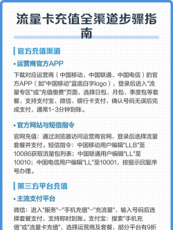 先看流量充值渠道现在充流量,渠道真的很多,最直接的就是,打开手机运营商的APP,比如移动的“中国移动”,联通的“中国联通”,电信的“电信营业厅”,在这些官方APP里,找到“充值”或“流量包”,选择你需要的套餐,点击支付就行,非常方便,而且,到账速度通常最快,除了官方APP,微信和支付宝,也是常用的充值入口,在微信的“服务”里,或者支付宝的“充值中心”,都能找到流量充值,输入手机号,选好套餐,支付即可,这些第三方平台,经常会有一些优惠活动,比如充值满减,或者送小额话费,可以留意一下。