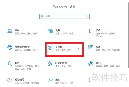 3、 进入设置后点击个性化选项即可。