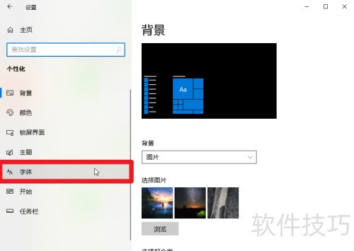 4、 第四步:点击个性化设置中的字体选项,所示。