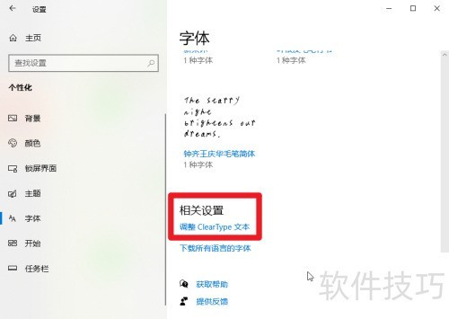 5、 向下滚动字体选项,找到调整ClearType文本这一设置项,操作所示。