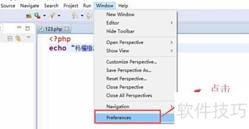 3、 接着点击顶部的窗口菜单,从下拉列表中选择首选项选项,具体操作所示。
