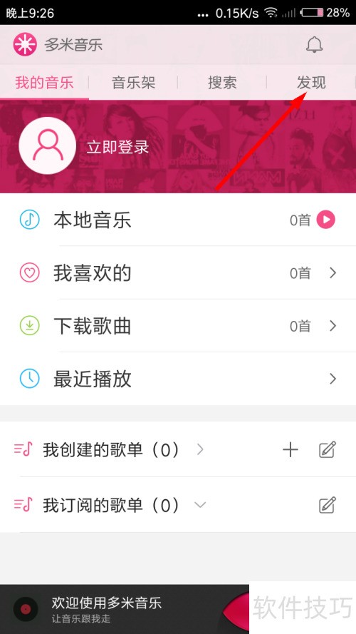 2、 打开软件,点击发现功能。