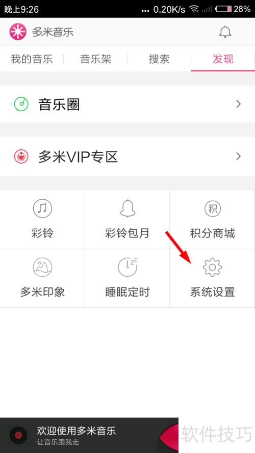 3、 进入发现页,点击系统设置选项。
