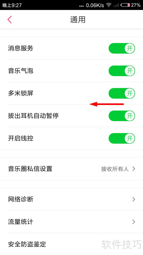 5、 开启多米锁屏功能开关。