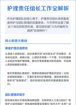 综上所述,护理组长虽非最高管理者,却是连接管理层与执行层的关键纽带。其作用不可替代,其成长值得重视。唯有不断完善选拔机制、明确权责体系、强化培训支持,并引导其在人格塑造、管理艺术与创新能力三个方面持续精进,方能真正发挥护理组长在临床护理工作中的核心作用,推动护理服务质量迈向更高水平。