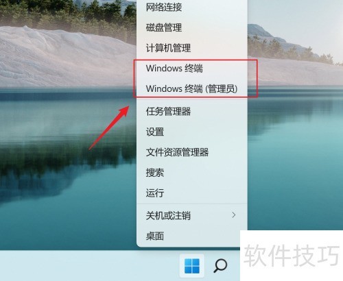 1、 右键点击开始按钮,选择Windows终端即可启动。