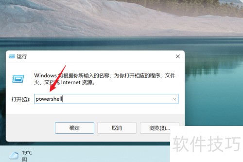 3、 按下组合键启动运行窗口,输入powershell后点击确定即可打开。