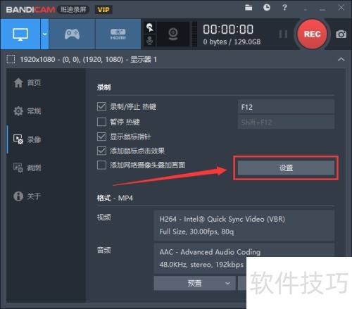 2、 打开班迪录屏软件,选择左侧菜单中的录像功能,具体操作所示。