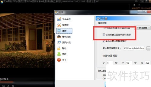 如何给影音之星设置在视频窗口里显示操作提示?