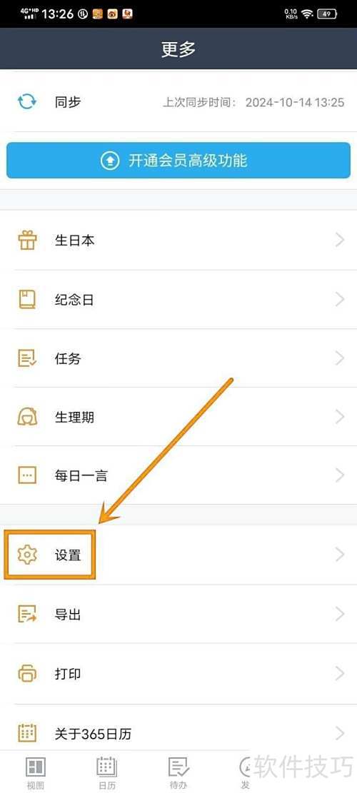 1、 打开365日历应用,进入设置选项。