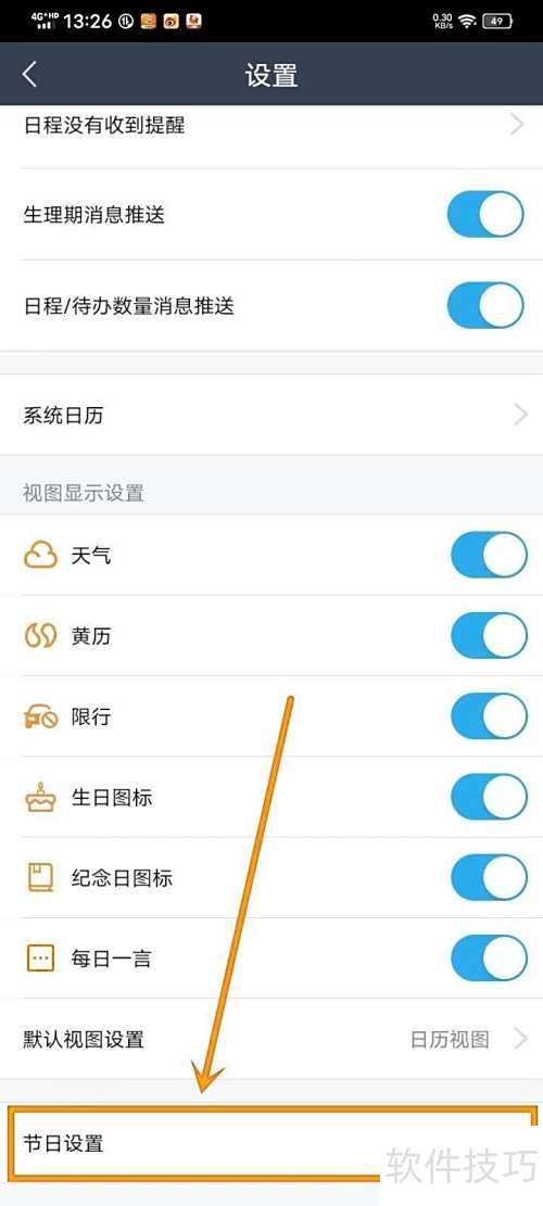 2、 进入设置页面,选择节日设置选项。