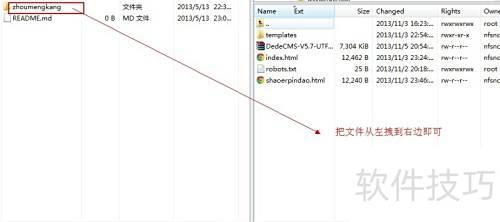 3、 左侧为本地Windows系统目录,右侧为服务器上的Linux(CentOS)系统目录,支持直接通过鼠标拖动文件在两者之间传输,操作简便,极大提升了文件管理效率。
