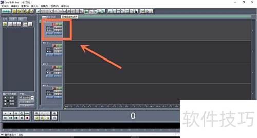 6、 在软件主界面中,有多个录音轨道可供选择。任选一个轨道后,点击左侧三个彩色图标中的,点击后会变为亮红色,表示已激活录音功能。