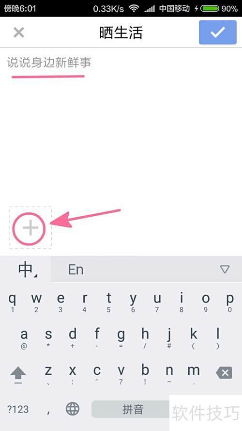 3、 记录此刻心情,分享生活点滴,点击+号还可添加精美照片。