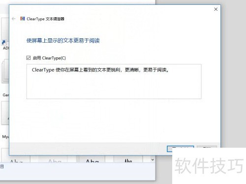 4、 勾选启用Cleartype选项,然后点击下一步继续。