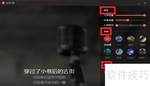 5、 录制完成后,可在界面中对已唱歌曲进行调音、混响及变声处理,优化整体听感效果。