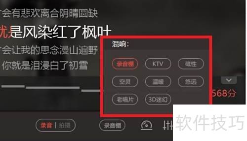 3、 录音棚为默认音效,点击可切换其他混响模式,按个人喜好自由选择。