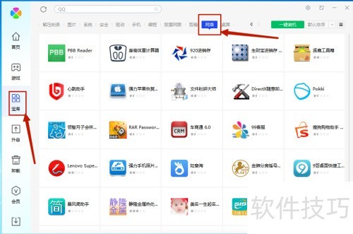 2、 在软件管理左侧目录选择宝库,进入全部软件后找到网络分类,单击鼠标左键完成操作。