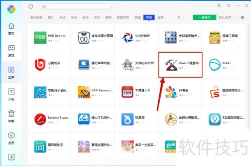 3、 在软件库中搜索DirectX随意卸载,找到后点击左键即可快速安装。