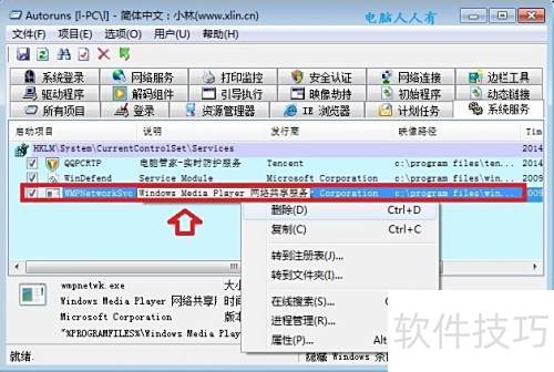 6、 如果用户发现系统自带的Windows Media Player无法打开多数常见多媒体文件,可以考虑禁用其开机自动更新功能。操作方法是:右键点击Windows Media Player图标,选择删除以取消其随系统启动的设置,从而避免不必要的后台运行和资源占用。