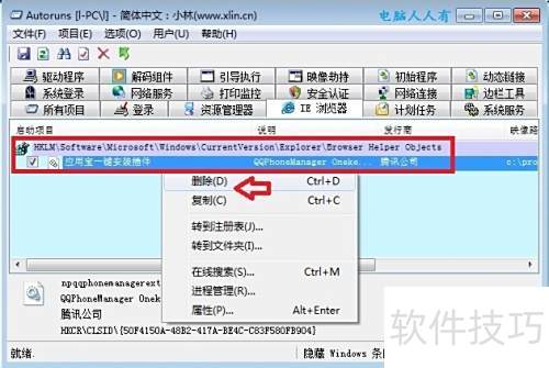 8、 应用宝是电脑管家提供的手机相关功能,若无手机或无需使用,用户不必安装该IE插件。可右键点击应用宝一键安装插件选项,选择删除即可。