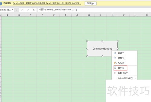 2、 将光标移至ActiveX控件上,右键单击并选择属性按钮即可进入设置界面。