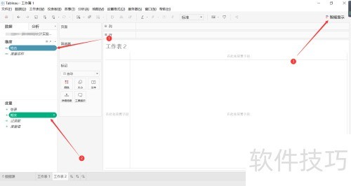 4、 按住Ctrl键分别选取维度和度量中的变量,再点击右侧的智能显示按钮。