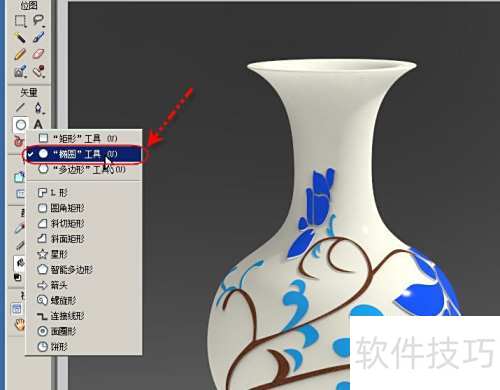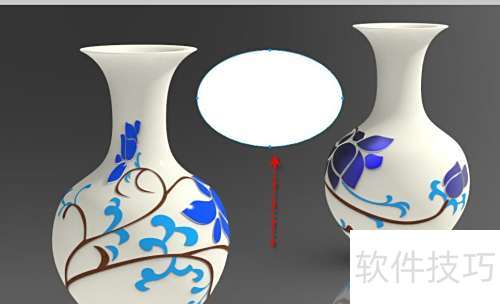 6、 此时花纹图案已贴入椭圆内并显示,但其位置与尺寸仍需调整。