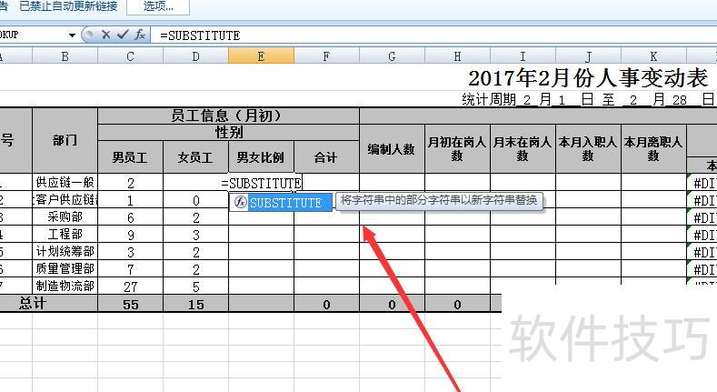 在相应单元格中输入公式=SUBSTITUTE进行替换操作。