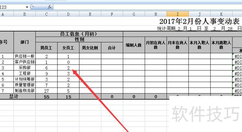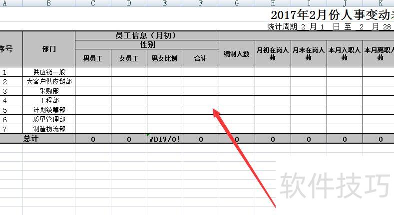 创建表格,录入基本信息,以不同部门男女比例为例进行演示。