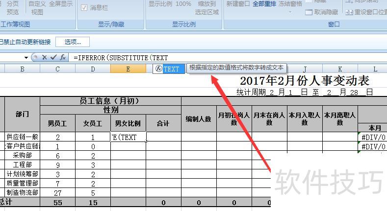 接着在后面输入TEXT,完整公式为=IFERROR(SUBSTITUTE(TEXT。