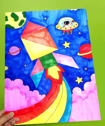 最后是第四步,填充细节和颜色,轮廓画好后,就可以丰富内容了,在每个小块里,画上不同的图案,或者涂上颜色,让画面变得生动,注意颜色搭配,要和谐好看,画完后,检查一下整体效果。
