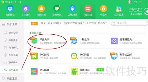 6、 安装完成后,桌面右上角将显示360桌面助手图标。