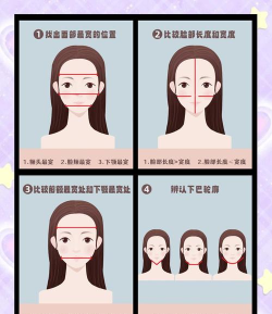 第二步,比较脸的长度和宽度,你可以用软尺量一下,脸的长度,是从发际线到下巴,脸的宽度,是两侧最宽处的距离,然后,看看是长度大于宽度,还是宽度大于长度。