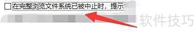 5、 在图形用户界面设置中,勾选完整浏览文件系统中止时提示选项。