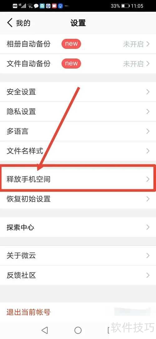3、 进入设置,点击释放手机空间。