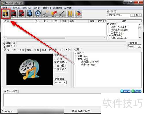 1、 在MediaCoder界面中,点击工具栏上的添加按钮即可。