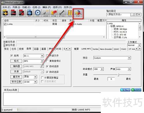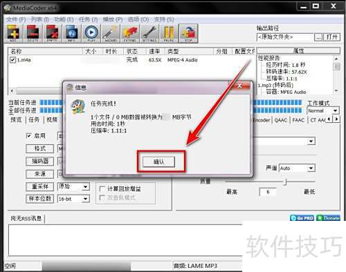使用MediaCoder将m4a音频转换为mp3格式,具体操作步骤详见以下教程。