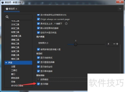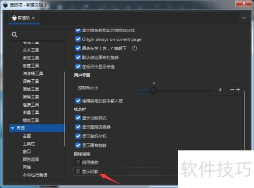3、 取消勾选显示阴影选项